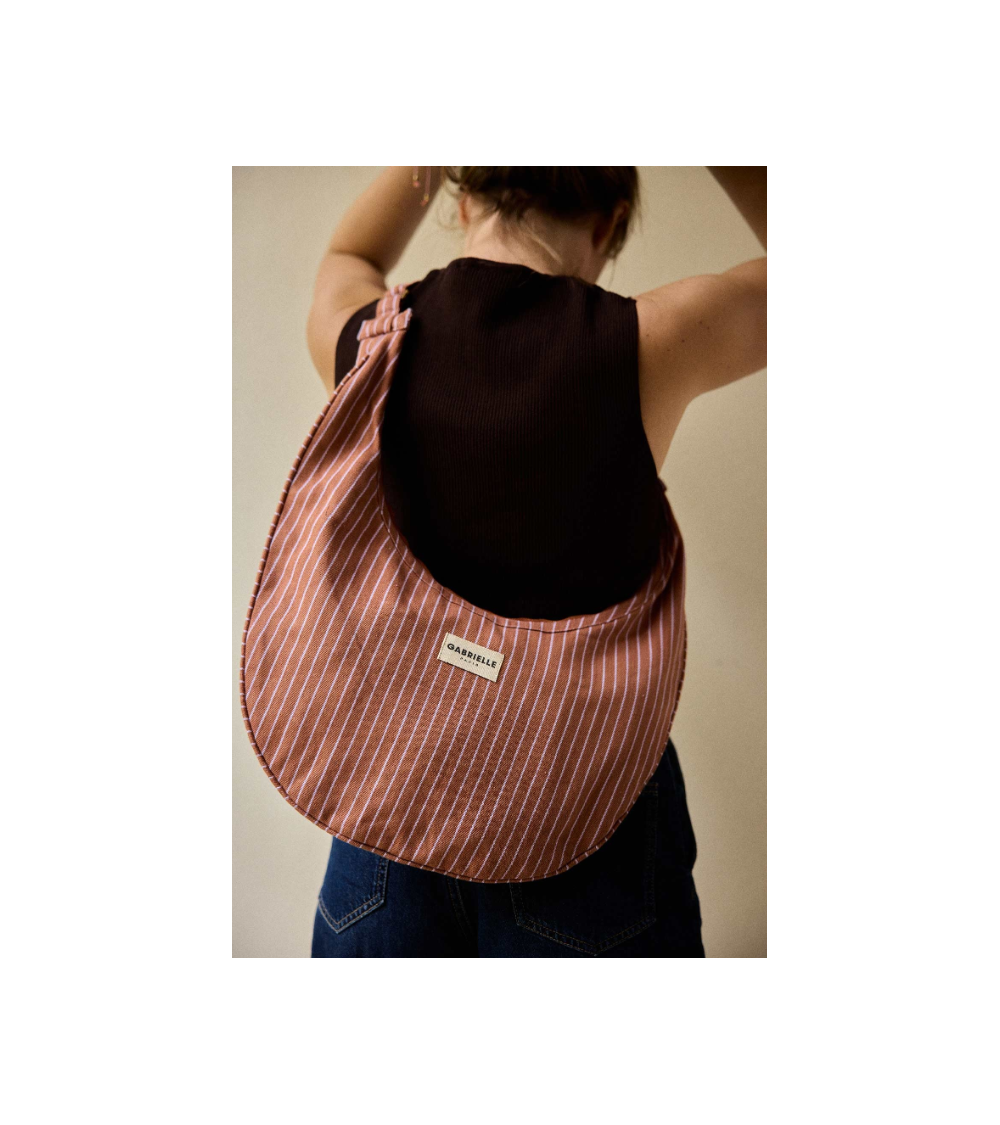Le sac New B Rayures Lilas en coton est pratique pour le quotidien. Les rayures apportent une touche élégante, tandis que sa conception légère le rend facile à porter. Idéal pour compléter toutes vos tenues avec style et simplicité.