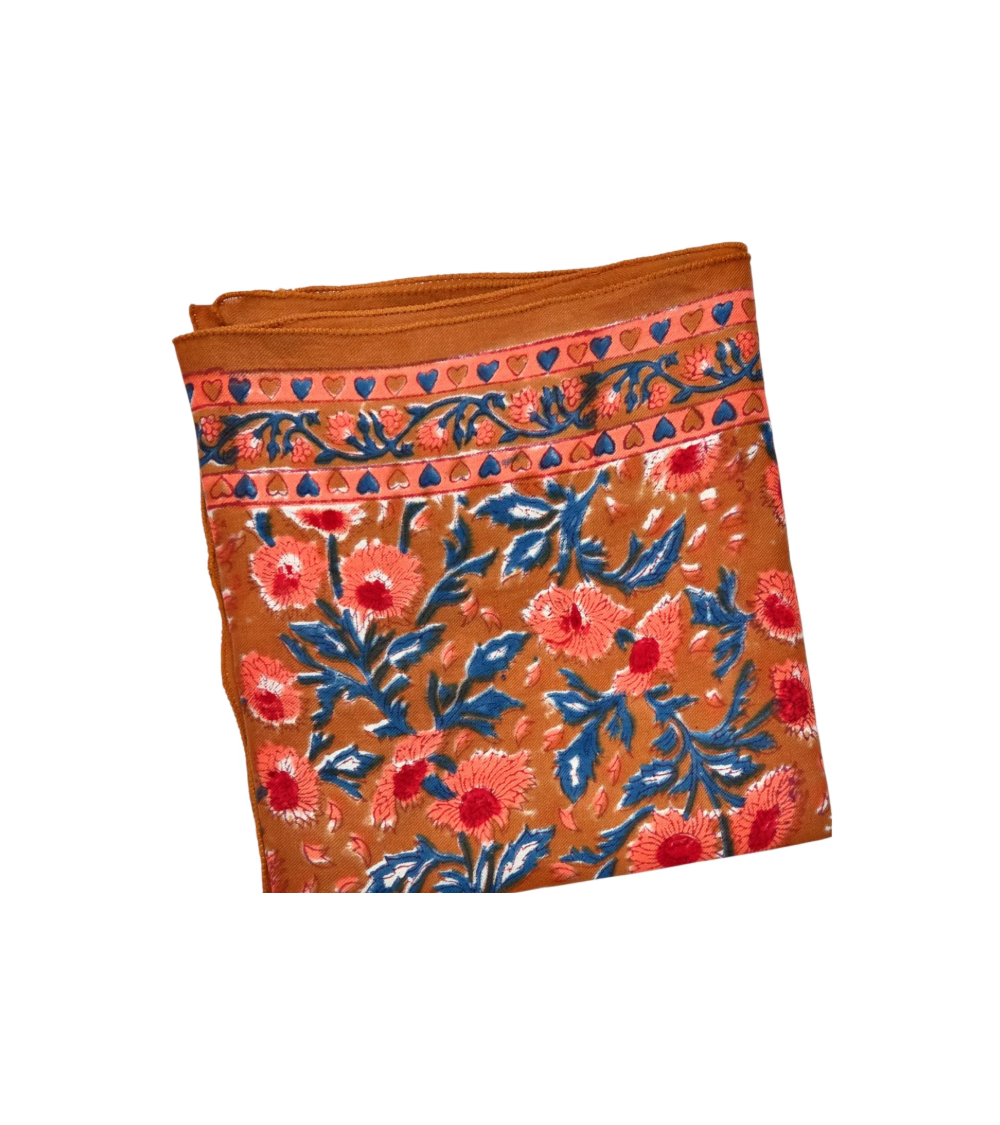 Foulard 100 x 100 cm nuage de coton Block Print India-E11