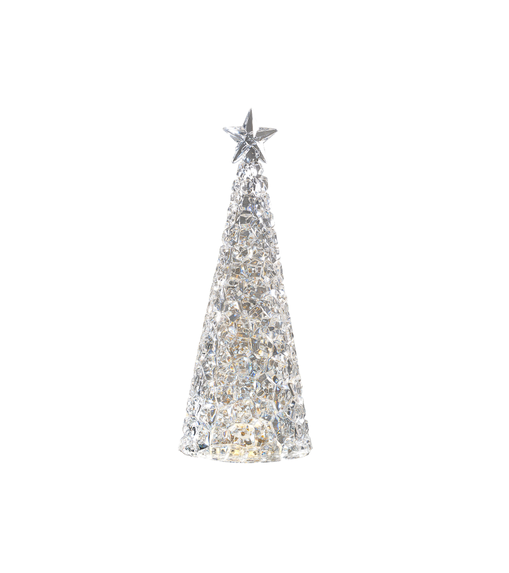 Le sapin LED Glamor est fabriqué en Acrylique coloris transparent, parfait pour observer le tourbillonnement des paillettes.