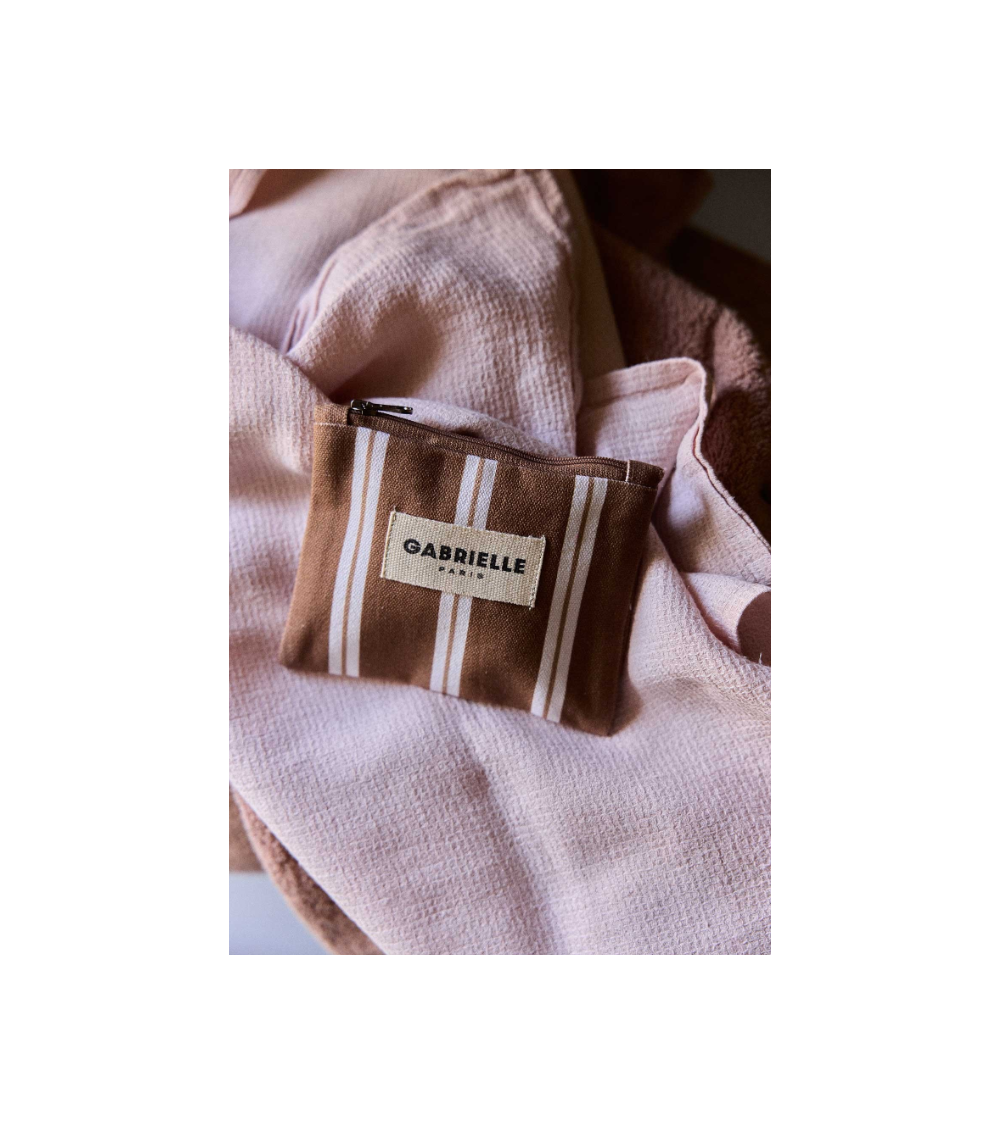 Le porte-monnaie en coton rayures noisette est idéal pour vos cartes, pièces ou petits objets.