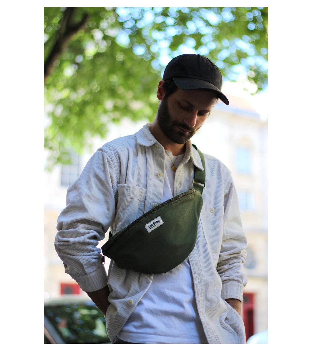 Sasha, c'est le sac banane pour celles et ceux qui manquent toujours de place pour leurs affaires. Dans sa poche extérieure avec fermeture éclair, vous pourrez y ranger vos essentiels les plus précieux comme votre carte bancaire, passeport ou carte d'identité. Dans la poche intérieure, vous y glisserez vos clés pour ne plus avoir à les chercher au fond de votre sac banane fourre-tout. Grâce à sa anse réglable, vous pouvez porter votre grande sacoche aussi bien sur un manteau épais en hiver que sur un t-shirt léger l été. Son coton bio épais et sa doublure unie vous permet de garder vos essentiels à l'abris des petites pluies. Sac banane disponible en plusieurs coloris. En choisissant notre intense vert olive, vous pourrez assortir votre sac à toutes vos tenues.