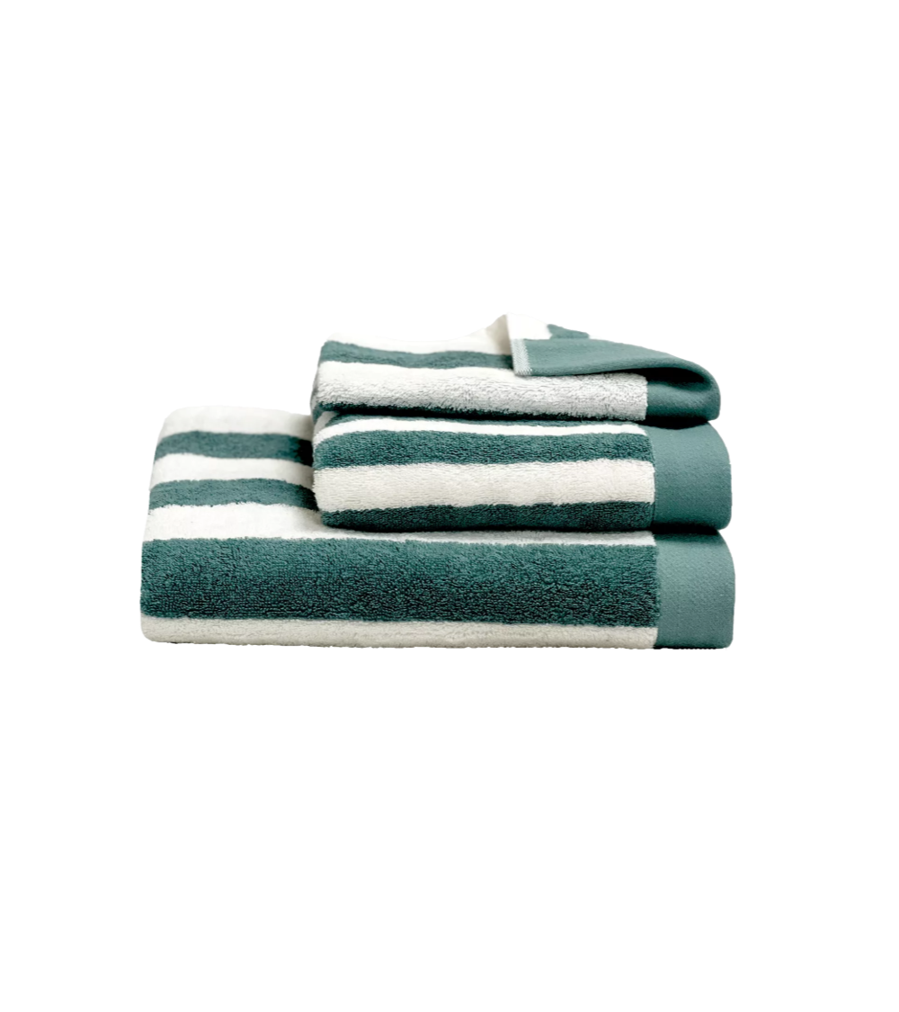 Serviette de bain Santorini Haomy. 100% coton éponge, motif à larges rayures.